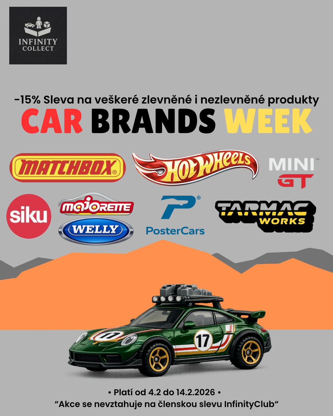 Získej –15 % slevu na veškeré produkty oblíbených automobilových značek jako Hot Wheels, Matchbox, Mini GT, Tarmac Works, Majorette, Siku, Welly a PosterCars.