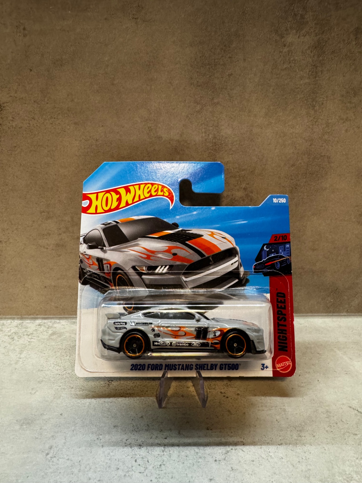 2020 Ford Mustang Shelby GT500 v šedém laku s oranžovými detaily a závodními polepy je must-have kousek pro fanoušky moderních amerických výkonových legend.