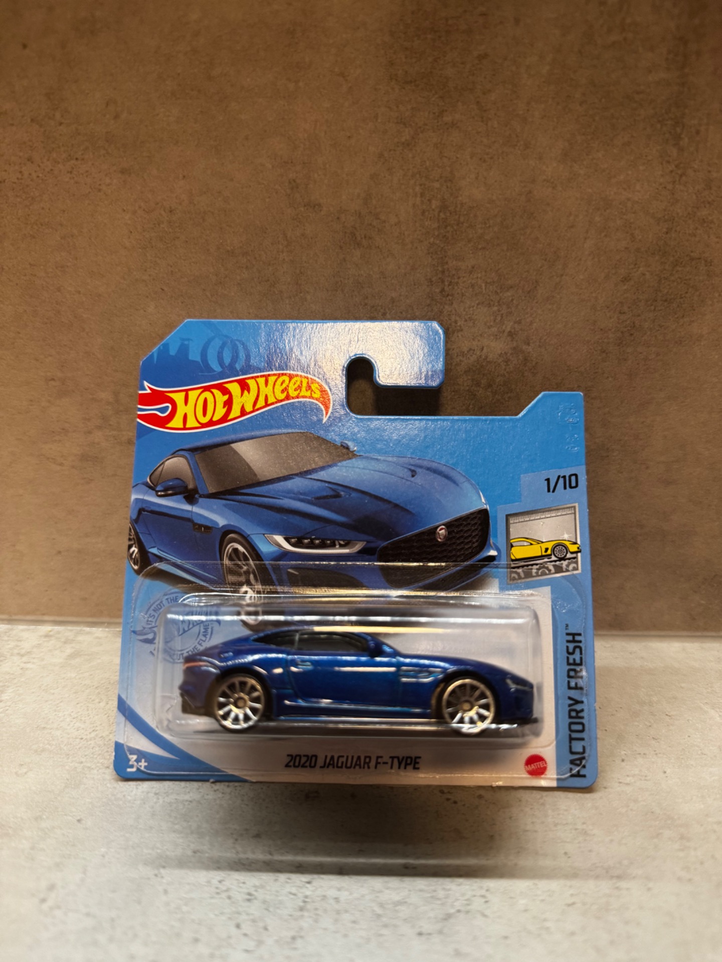 Elegantní sportovní kupé 2020 Jaguar F-Type v modré metalíze z edice Factory Fresh. Model nabízí věrné linie skutečného vozu, detailní přední masku a moderní kola. Ideální kousek pro fanoušky britských sportovních aut a sběratele moderních silničních modelů Hot Wheels.