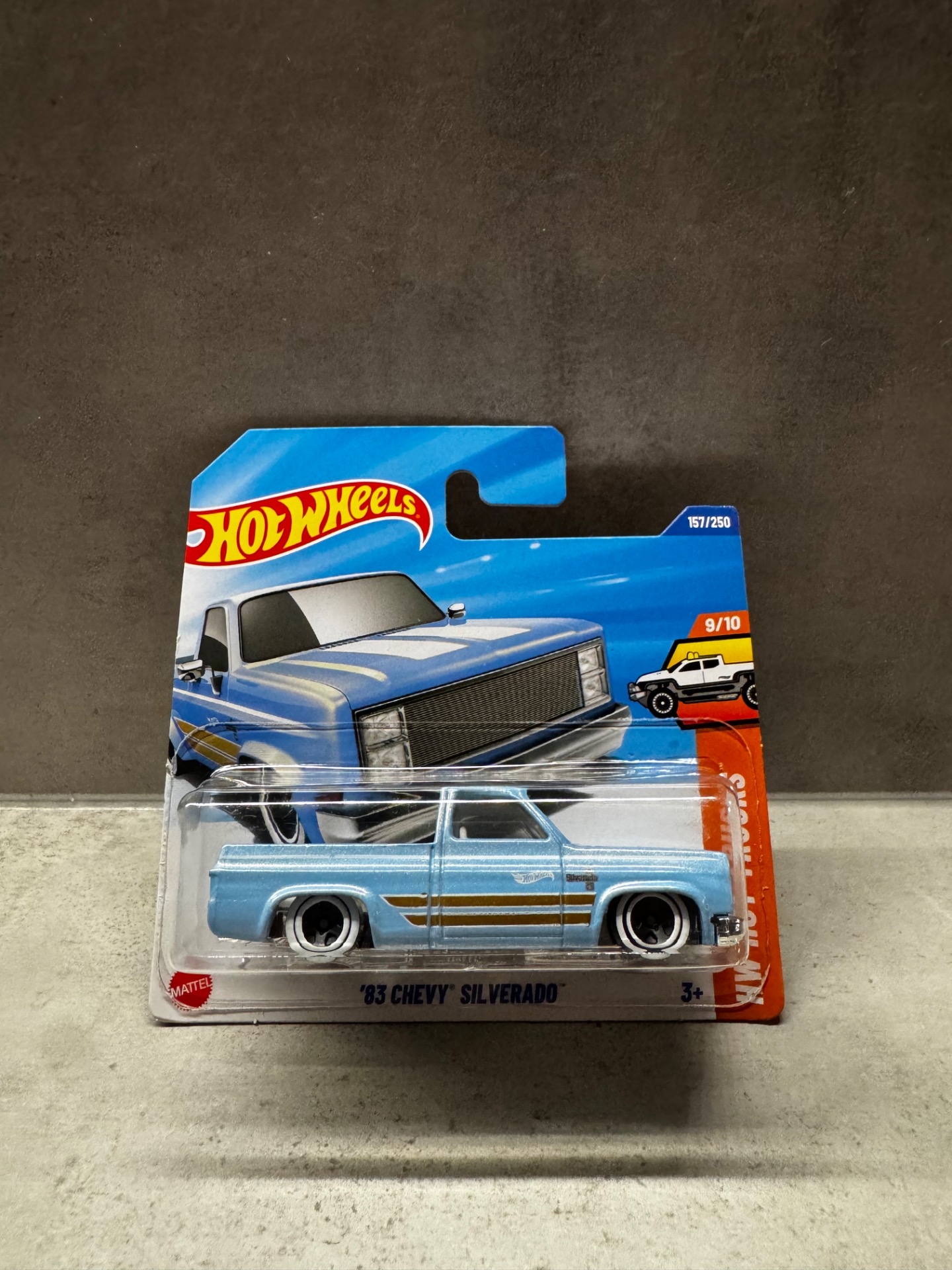 Detailně zpracovaný model klasického amerického pick-upu Chevy Silverado z roku 1983 v měřítku 1:64 od značky Hot Wheels. Tento ikonický truck vyniká výrazným lakováním a sportovním stylem.