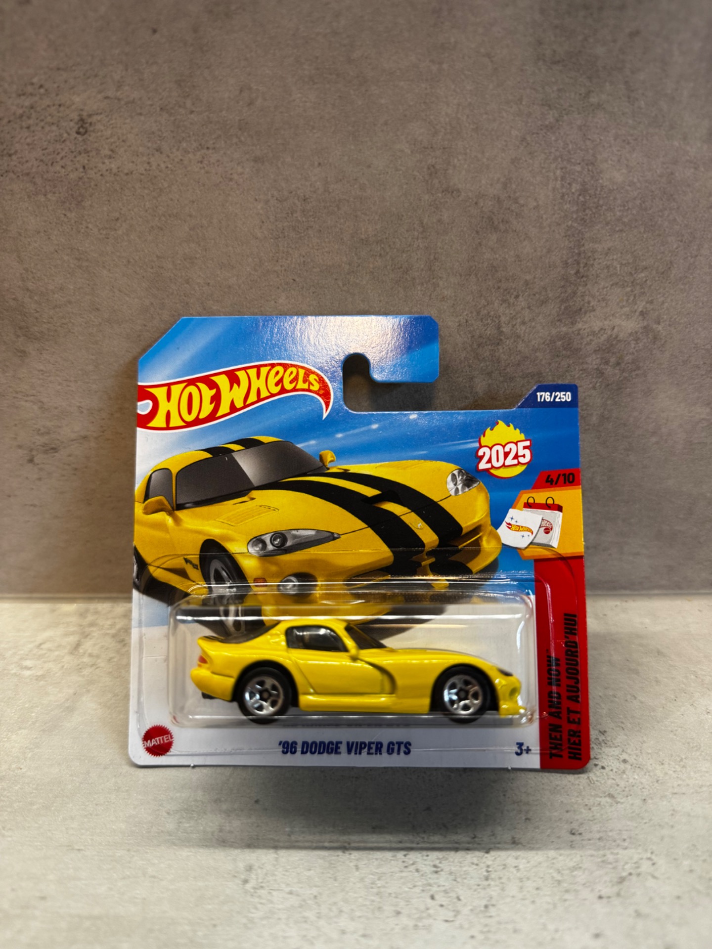 Legendární '96 Dodge Viper GTS v ikonické žluté barvě se závodními pruhy. Sportovní silueta, agresivní předek a věrné detaily dělají z tohoto Hot Wheels modelu skvělý kousek do sbírky všech fanoušků amerických supersportů.