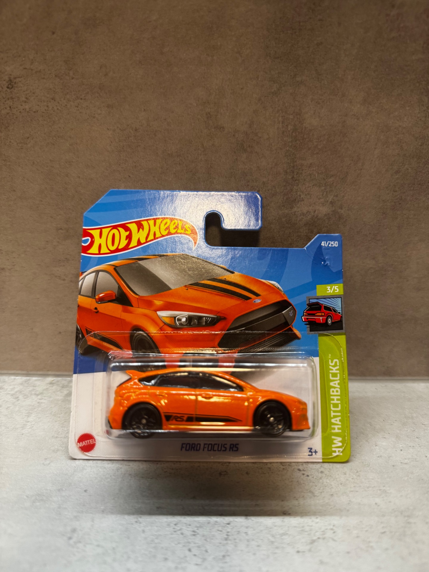 Sportovní hatchback Ford Focus RS v oranžové barvě je jedním z nejoblíbenějších moderních Hot Wheels modelů. Tato varianta ze série HW Hatchbacks (3/5) nabízí agresivní vzhled, černé sportovní disky a decentní "RS" boční potisk. Ideální doplněk do sbírky evropských i moderních sportovních aut.
