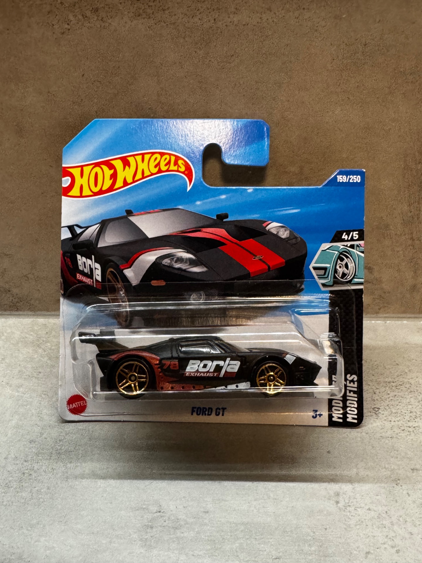 Závodní Ford GT ve speciální edici Borla Exhaust. Kombinace černé a červené barvy dodává modelu agresivní vzhled – ideální volba pro "race livery" sběratele.