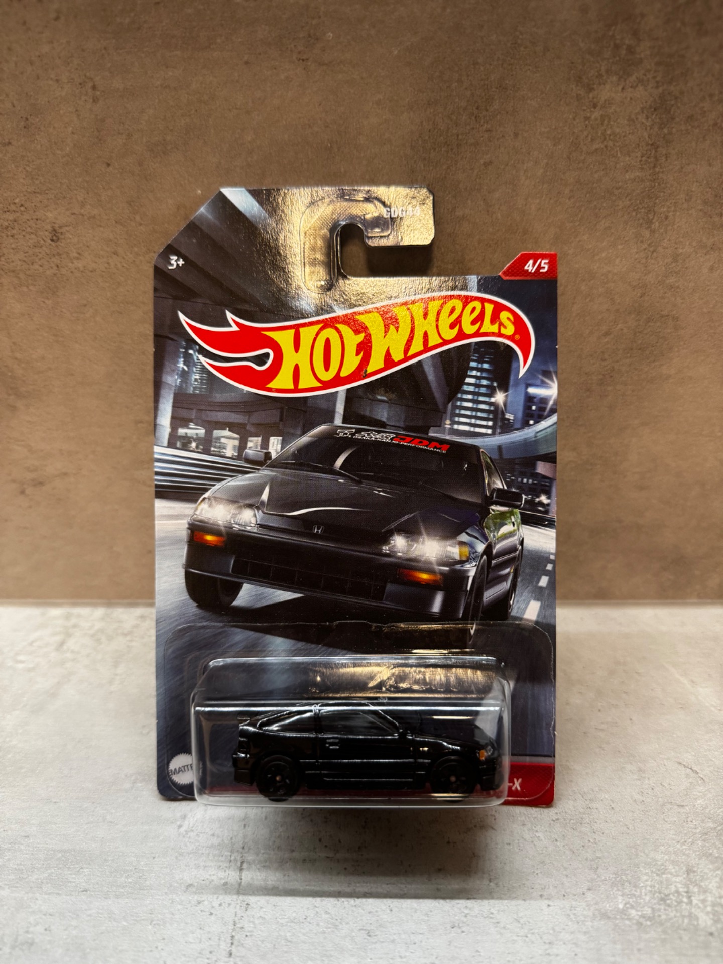 Klasický Honda CR-X v elegantním černém provedení. Minimalistický, čistý styl a perfektní proporce dělají z tohoto modelu oblíbený sběratelský kousek mezi fanoušky japonských youngtimerů z řady Hot Wheels Hatchbacks.