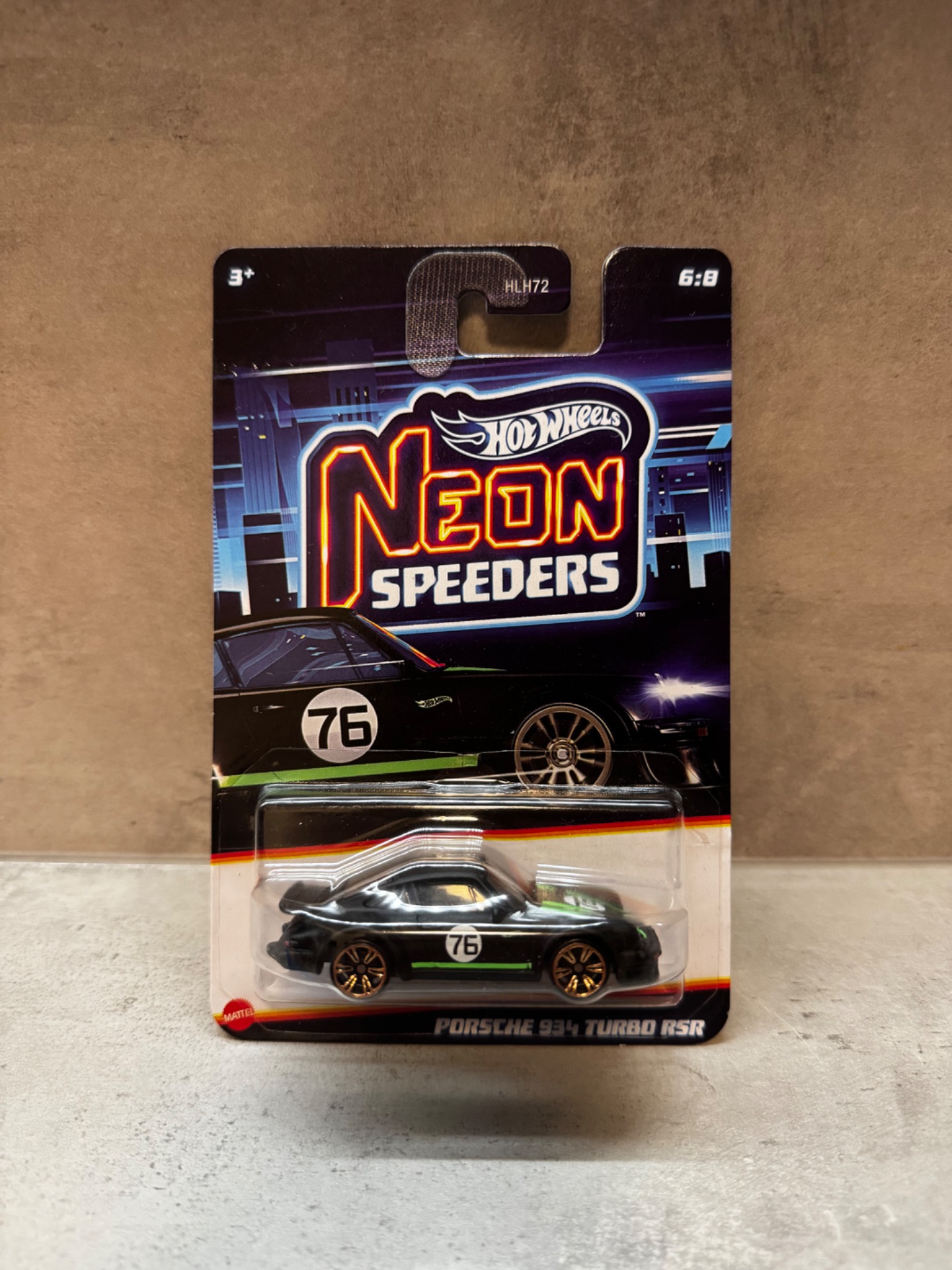 Stylový sběratelský model Porsche 934 Turbo RSR z řady Hot Wheels Neon Speeders. Závodní legenda v moderním neonovém provedení s metalickým lakem, zlatými koly a detailními grafickými prvky. Ideální kousek pro fanoušky motorsportu, Porsche i prémiových Hot Wheels edic.