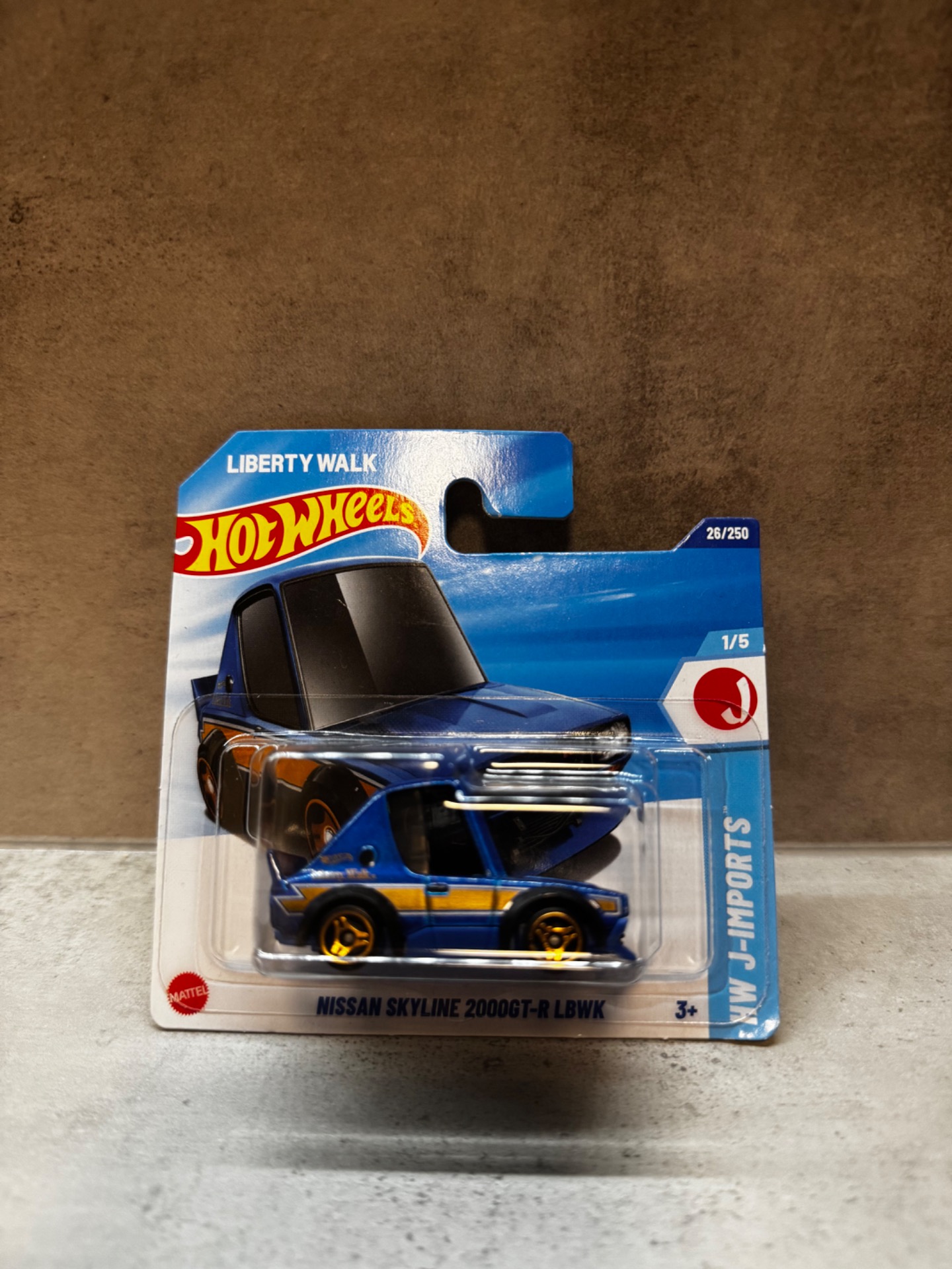 Ikonický Nissan Skyline 2000GT-R v oficiální spolupráci s Liberty Walk. Modré zbarvení s kontrastním zlatým pruhem a koly odkazuje na japonskou tuningovou scénu. Oblíbený licencovaný model s vysokým sběratelským potenciálem.