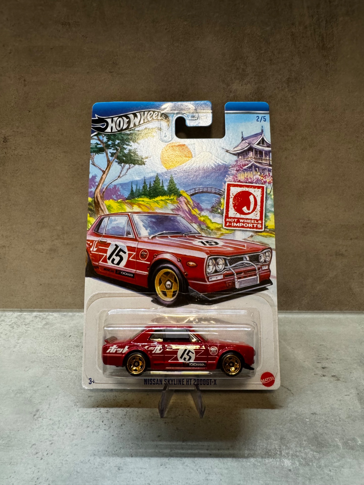 Ikonický japonský klasik v detailním provedení ze série J-Imports. Nissan Skyline HT 2000GT-X přináší retro závodní livery, zlaté disky a nezaměnitelný styl legendární generace Skyline.