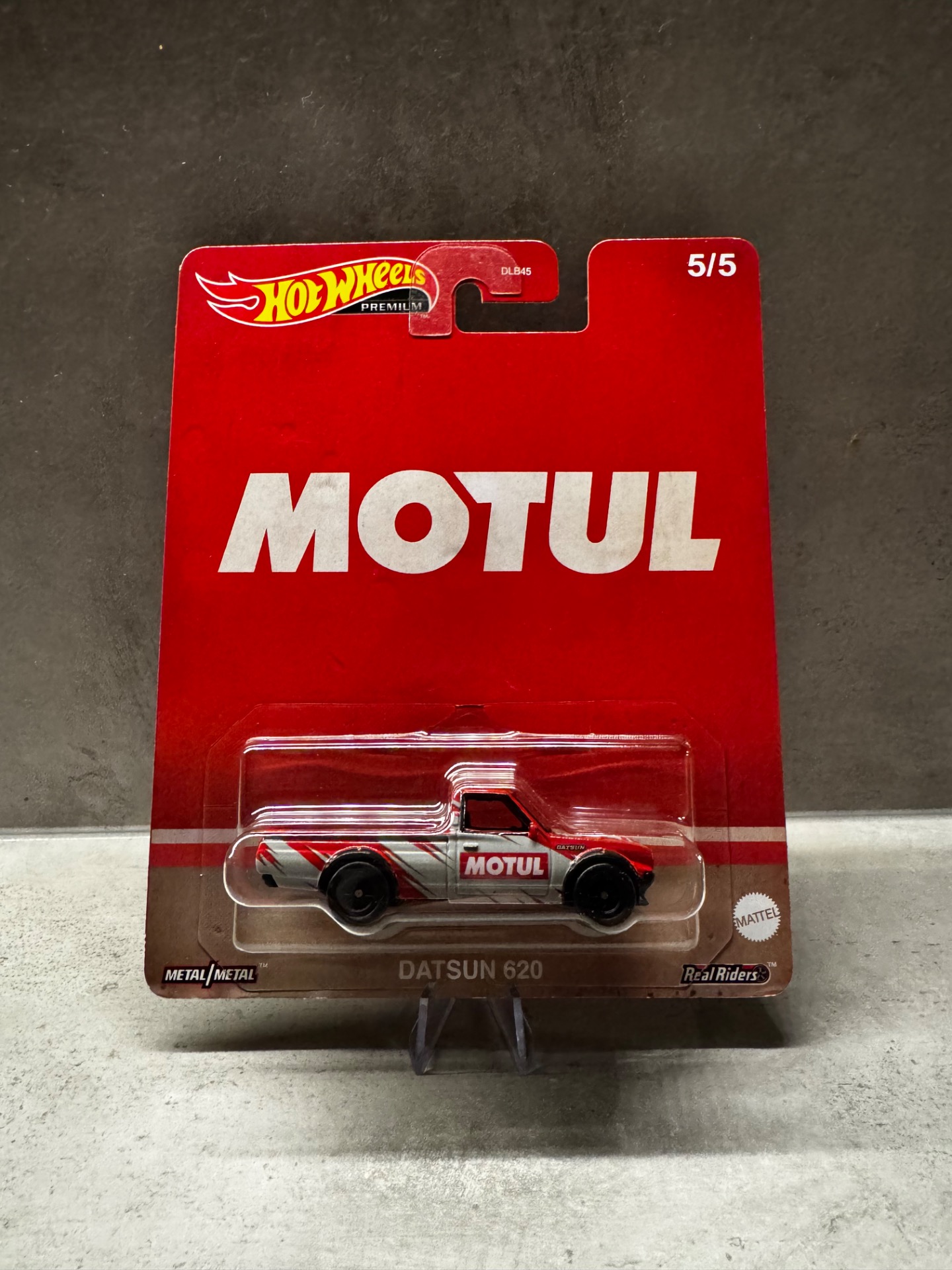 Prémiový model Datsun 620 ve speciálním Motul závodním provedení. Model je součástí série Hot Wheels Premium, nabízí kovovou konstrukci Metal/Metal a Real Riders gumová kola. Atraktivní kousek pro fanoušky JDM a motorsportu.