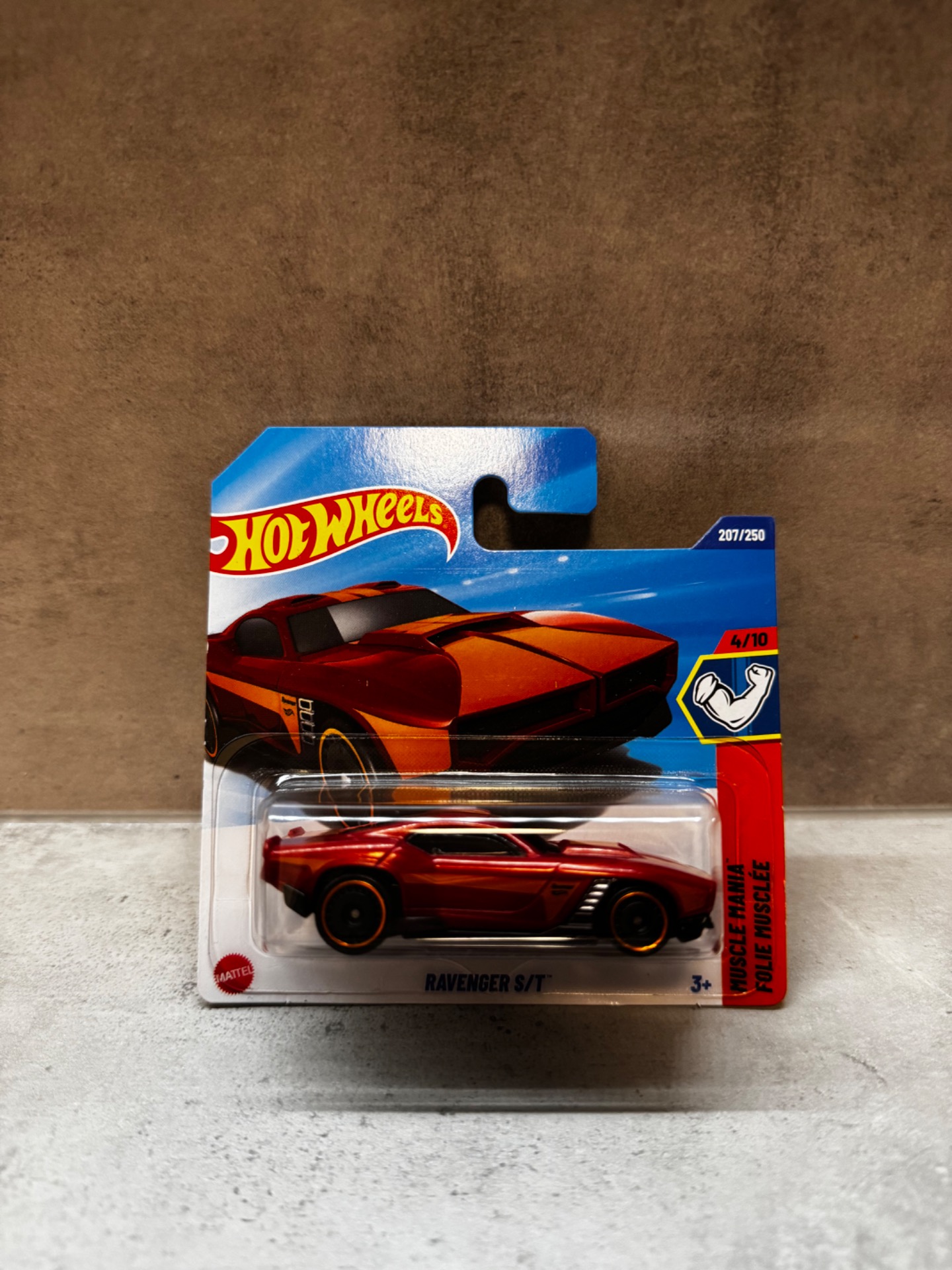 Stylový fantasy model Ravenger S/T z edice Hot Wheels Muscle Mania. Agresivní linie, tmavé lakování a sportovní vzhled zaujmou na první pohled. Skvělý doplněk jak do sbírky, tak na hraní.