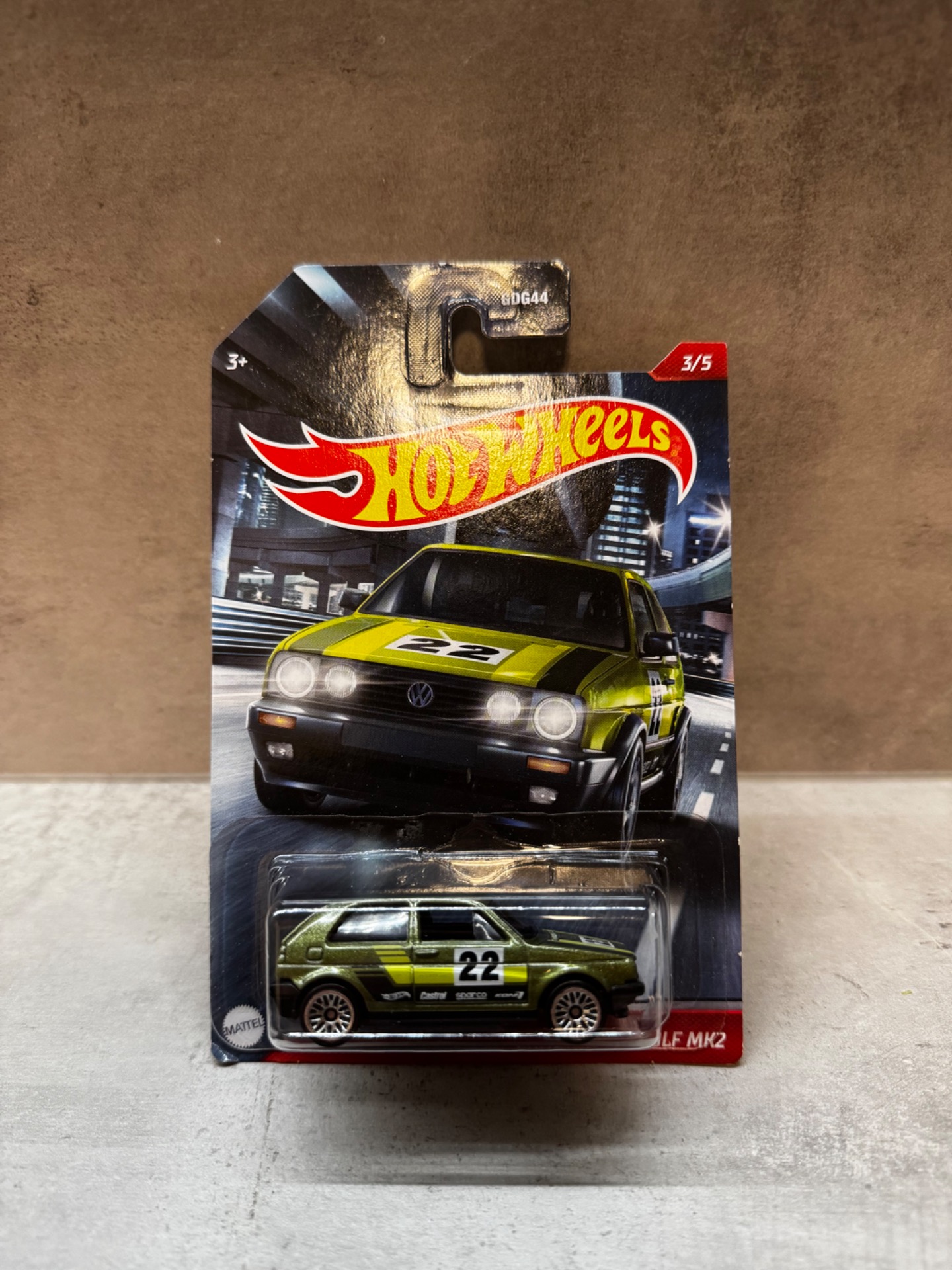 Kultovní Volkswagen Golf MK2 v rally stylu s číslem 22. Skvělý casting s propracovanými detaily, ideální pro fanoušky evropské klasiky i sběratele řady Hot Wheels Hatchbacks.