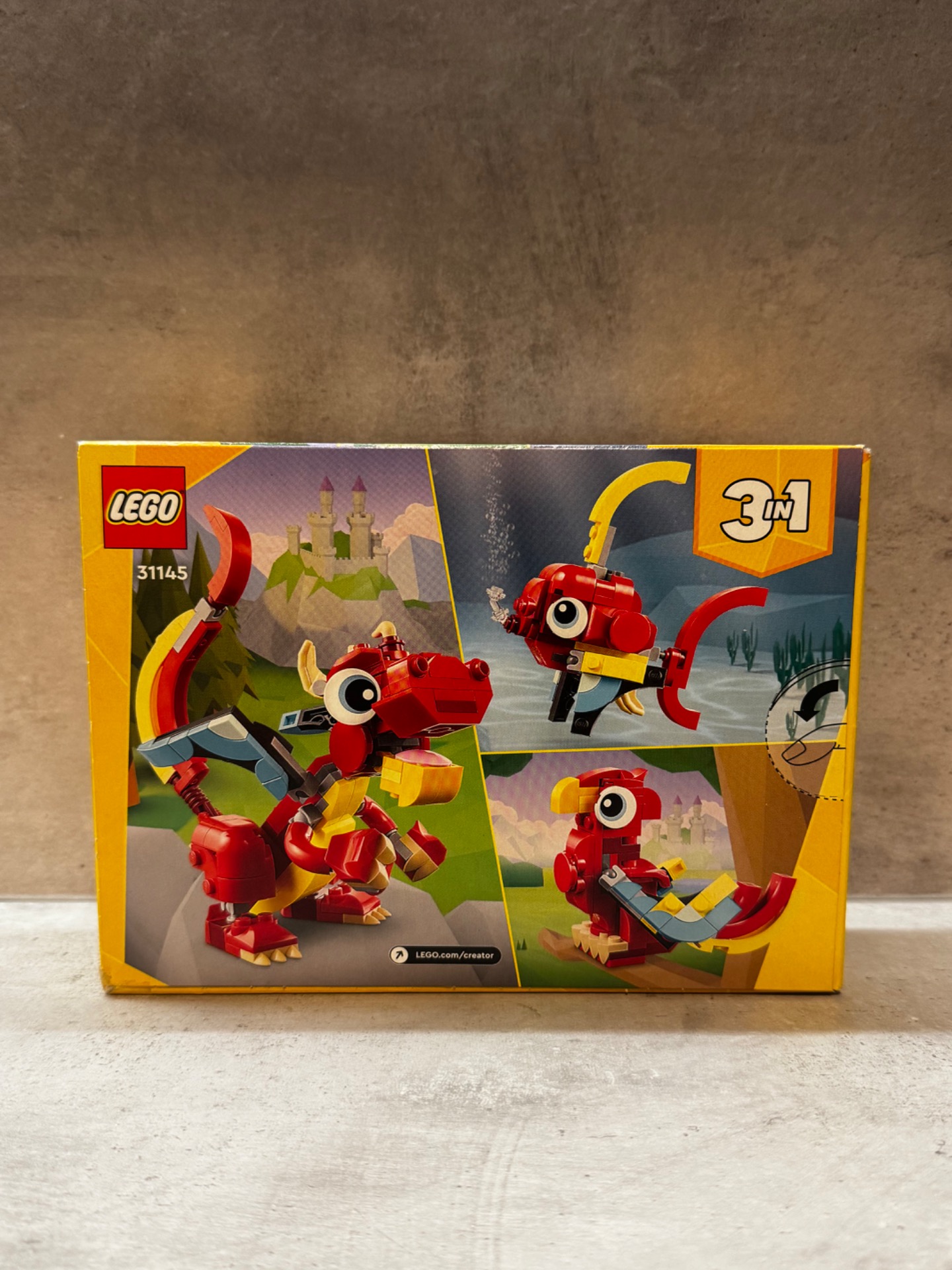 Kreativní děti od 6 let se se stavebnicí LEGO® Creator 3 v 1 (31145) Červený drak vydají do kouzelné země plné příběhů. Postaví si přátelského draka s velkýma očima a pohyblivými pažemi, tlapami, křídly, nohama, chodidly, hlavou a tlamou. Až velkolepá dobrodružství skončí, model si vystaví v pokojíčku. Stavebnice LEGO® Creator 3 v 1 dětem přináší svět nekonečných herních možností. Ze stejné sady kostek si postaví hned 3 různá zvířata: Poskládají si pohyblivého draka, přestaví jej na fénixe s pestrobarevnými křídly a toho poté přetvoří na hračku rybky nebo si vytvoří vlastní zvířátko z kostek LEGO.