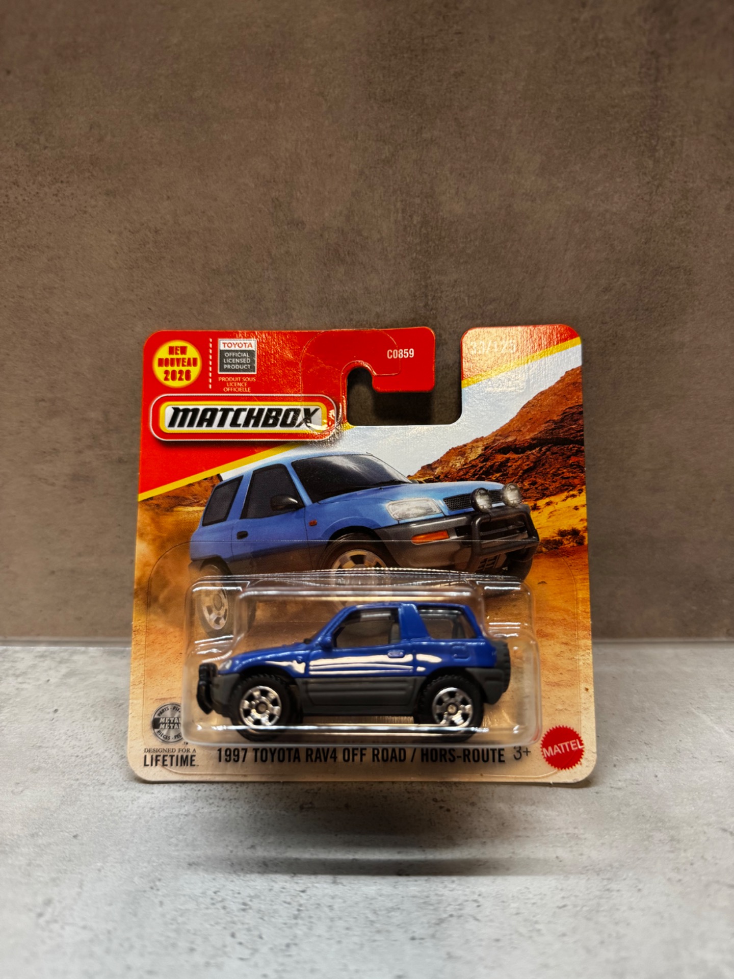 Kompaktní SUV Toyota RAV4 první generace v off-road provedení od značky Matchbox. Model zobrazuje civilní, ale sběratelsky atraktivní verzi ikonického JDM SUV, které odstartovalo boom městských crossoverů.